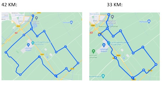 De beoogde route is 42 KM lang, maar we kunnen bij knooppunt 81 gezamenlijk beslissen, om de route met ongeveer 9 KM in te korten. In beide gevallen komen we langs Boer Kok, waar we wel verdient, iets kunnen eten en drinken (op eigen kosten).