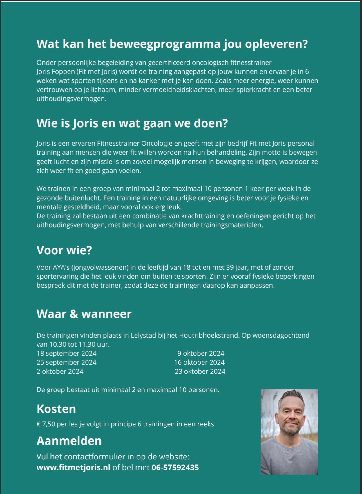 FIT MET JORIS: TRAINEN NA KANKER voor jongvolwassenen